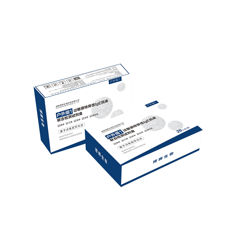 本产品基于量子点免疫荧光层析手艺,,, ,,可用于体外定量检测人血清或血浆中常见户外过敏原特异性 IgE 抗体。。 。。。。。。
